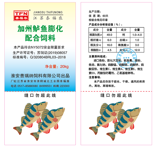 加州鱸魚(yú)、鱖魚(yú) 膨化配合飼料